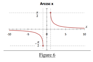 \[– ∞ ≤ x ≤-1\, or\, 1≤x≤ ∞\] | \[-\frac{π}{2}≤y≤\frac{π}{2},y \neq 0\] | ![]() |