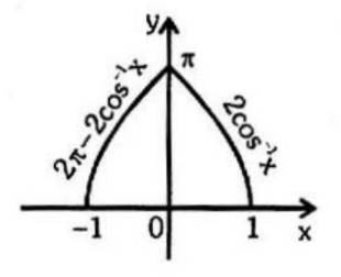 | \[y=cos^{-1}(2x^2-1)\] | \[\space \space \space \space 2cos^{-1}x \space \space \space \space \space \space if \space \space \space \space \space \space \space \space \space 0 \leqslant x \leqslant 1\]\[2\pi-2cos^{-1}x \space \space \space \space \space \space if \space \space \space \space\space -1 \leqslant x \leqslant 0\] | ![]() |